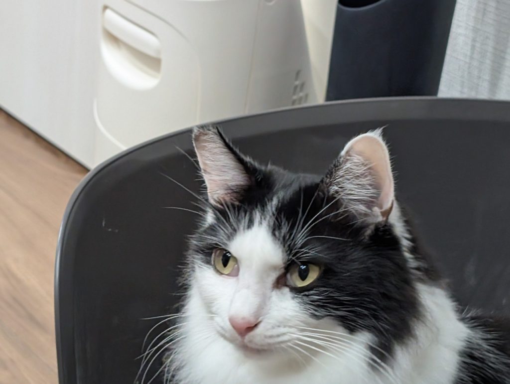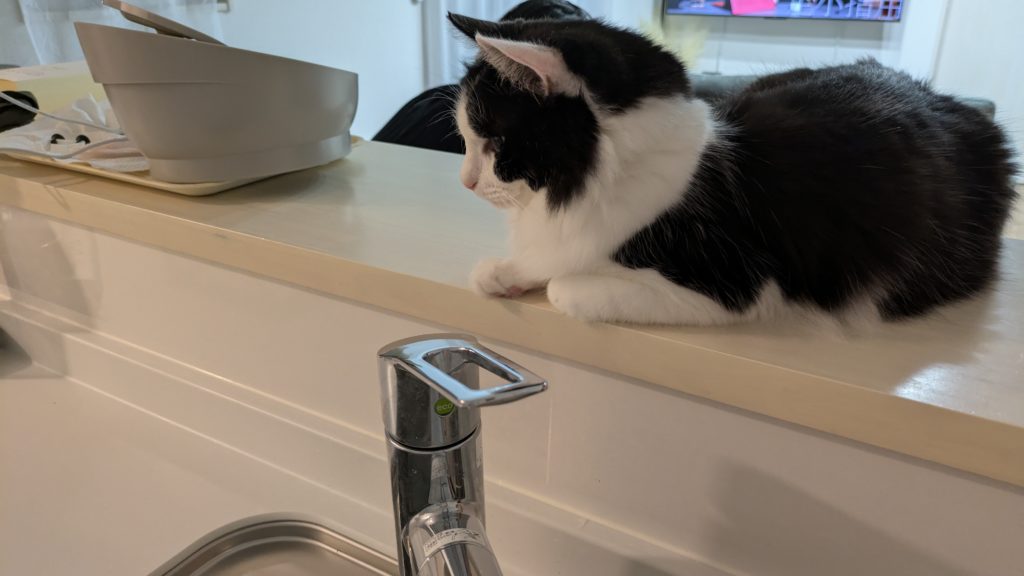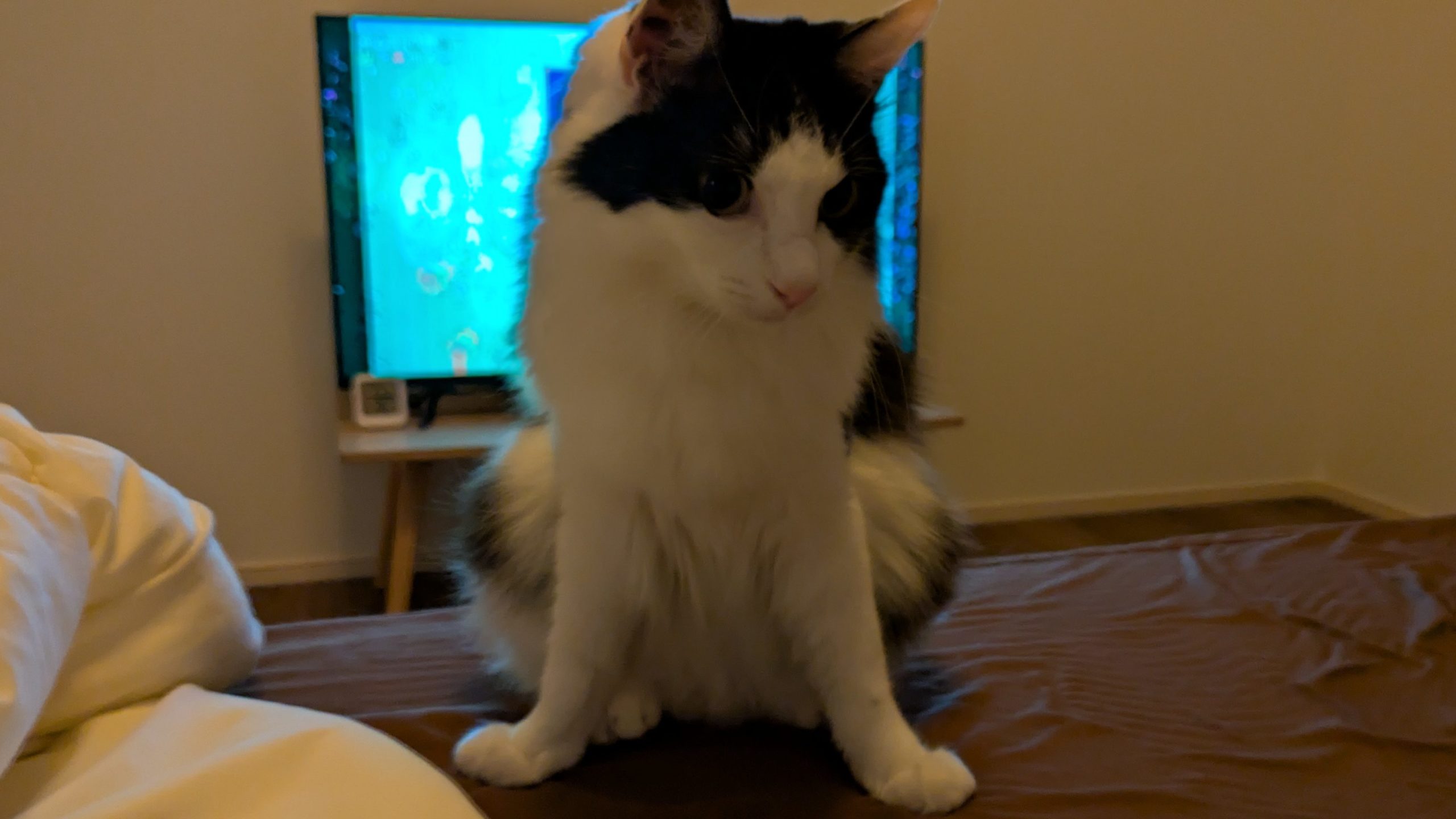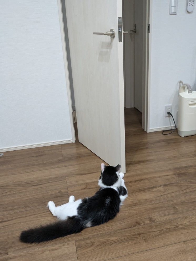 トイレの前でじっと待ってる姿。出てきた瞬間に「にゃー」って鳴くのがたまりません。