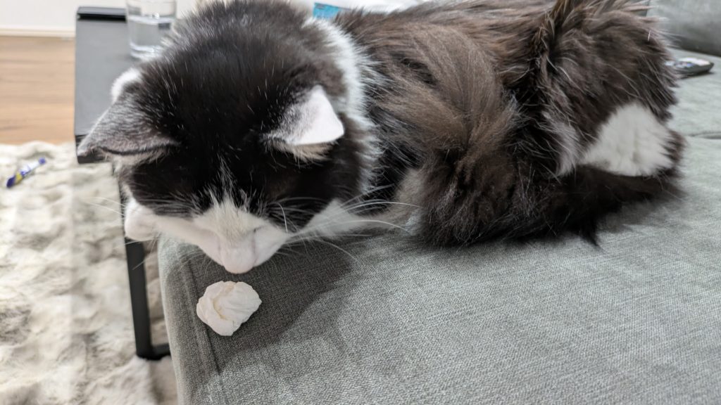 高級おもちゃより、ティッシュが最高。猫あるあるですね。