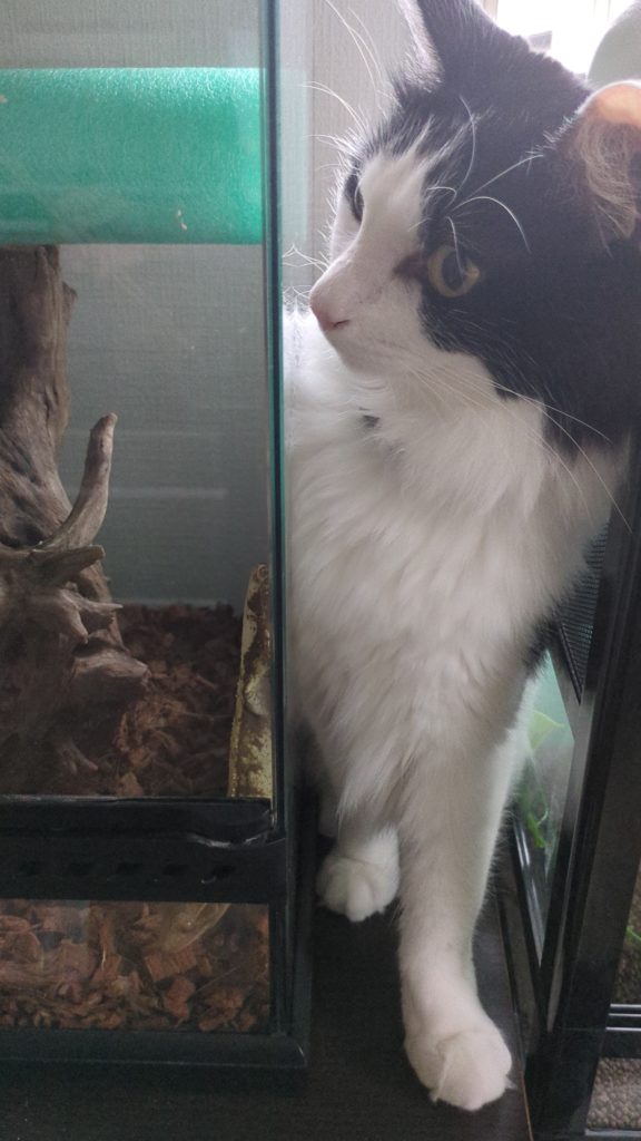 爬虫類に興味津々。じーっと見てる姿がちょっと兄貴感すらあります。