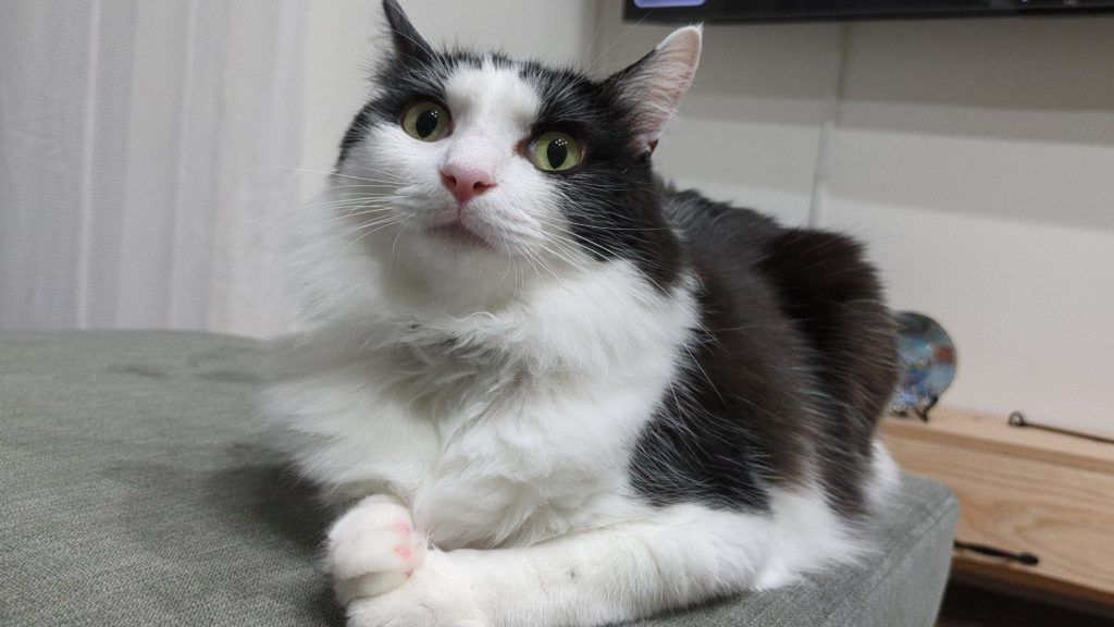 猫といえばこれ。足がすっぽり体に収納された香箱座り。見てるだけで癒やされます。