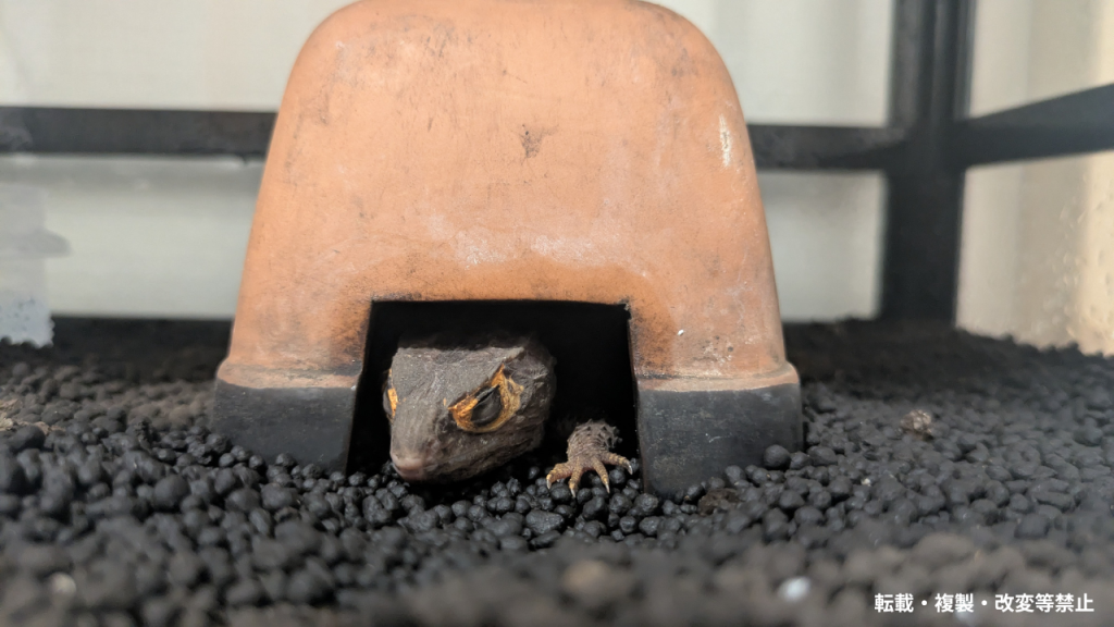 - 餌は基本活餌(コオロギ・デュビアなど)