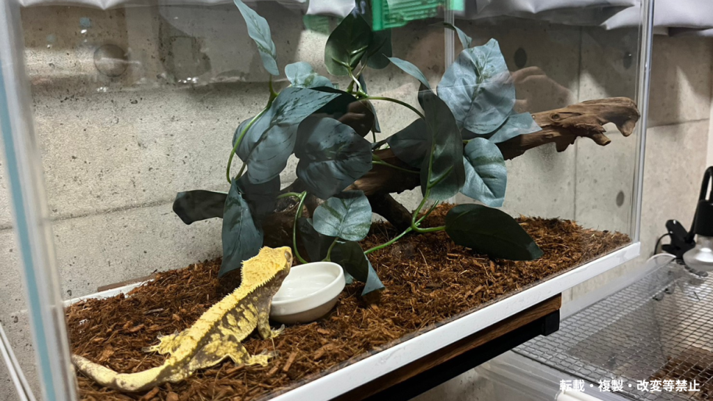 クレステッドゲッコーは樹上性のため、縦に高さのある飼育環境が理想的です。