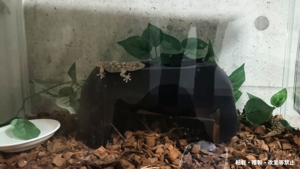 - 温湿度計:温度は28度前後、湿度は40~60%を保つのが理想。乾燥に強いとはいえ、脱皮不全になるので適切な湿度管理が必要です。
