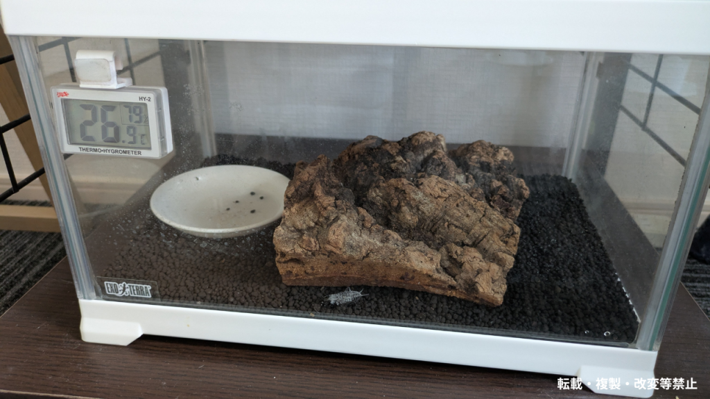 - 保温ライト:夜行性用を使用。湿度が下がることがあるので注意。