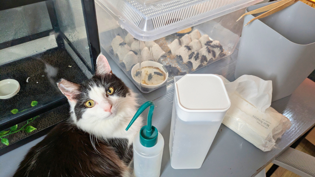 猫と爬虫類を同時に飼育していると、予想外の場面で猫が大活躍することもあります。