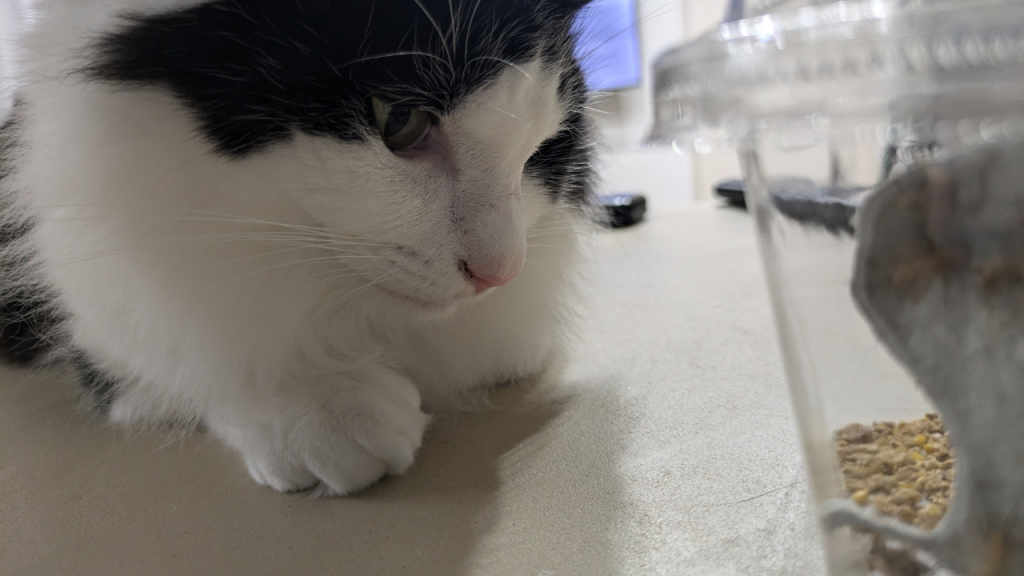 コオロギを“観察対象”として楽しんでいる猫を見ていると、なんとも言えない癒しを感じます。