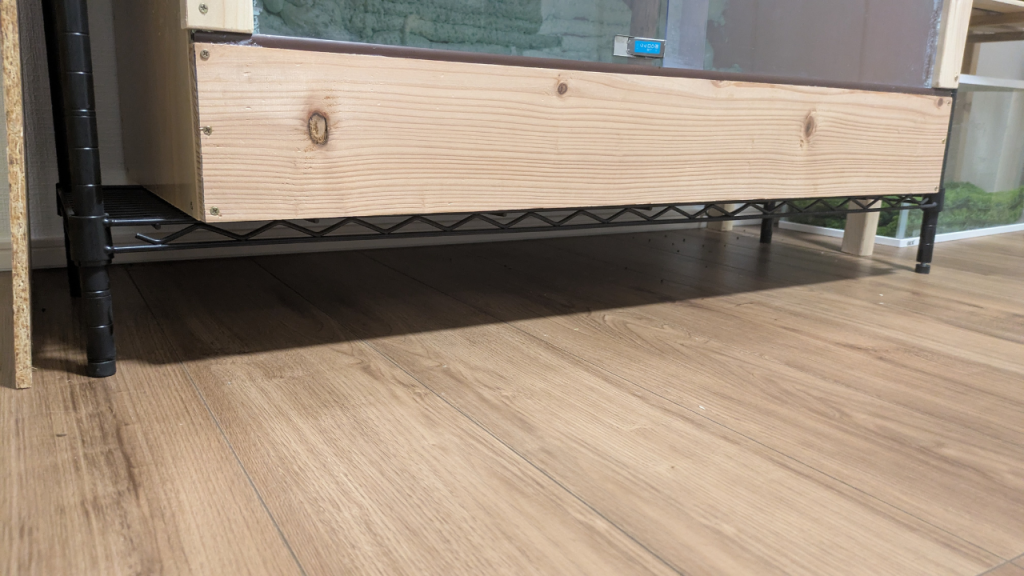 アカメカブトトカゲ用に使っている自作棚、実はちょっとグラつきが…。