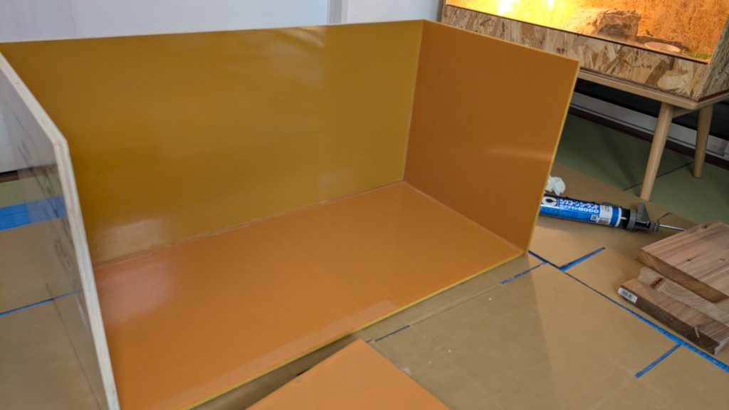木材は「針葉樹塗装合板」や「パネコート」を使いましたが、これは後述する失敗の原因に…。サイズは事前にしっかり決め、可能なら購入時にカットしてもらうのがおすすめです。