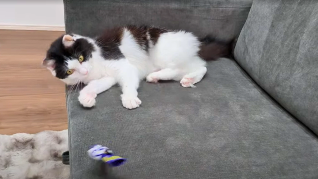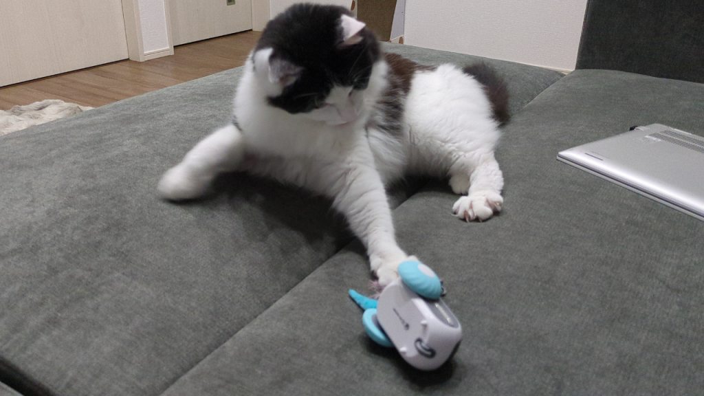 自動で動いてくれるおもちゃ「ゴーゴー爆走ロボ」は、障害物を避けながら走るセンサー付き。猫がひとりでも楽しく遊べます。さらに、リモコン操作も可能なので、飼い主が操縦して一緒に遊ぶこともできます。