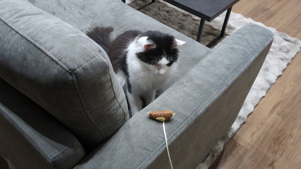 猫じゃらしはやっぱり定番。我が家の猫が特に好きなのは、「しゃかしゃか音のするひも付き猫じゃらし」。音と動きの組み合わせが楽しいようで、夢中になって追いかけています。