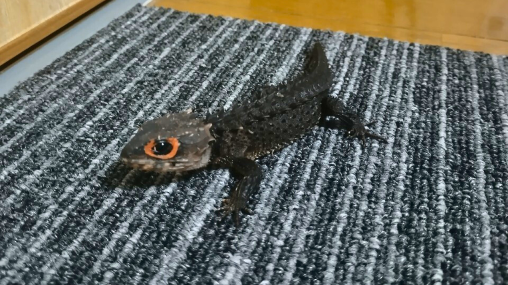 小さな恐竜のような見た目に、赤いアイリングが特徴のトカゲです。