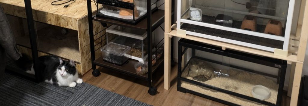 ストレスの影響を受けやすい爬虫類のためにも、今は別室で過ごしてもらっています。