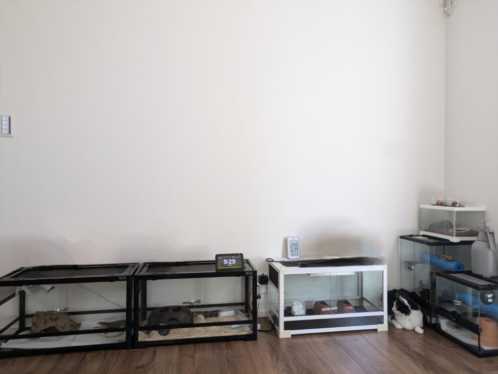 私が心配性というのもありますが、もしケージから脱走してしまったら…驚いた爬虫類がしっぽを自切してしまったら…など、想像してしまうと心配は尽きません。