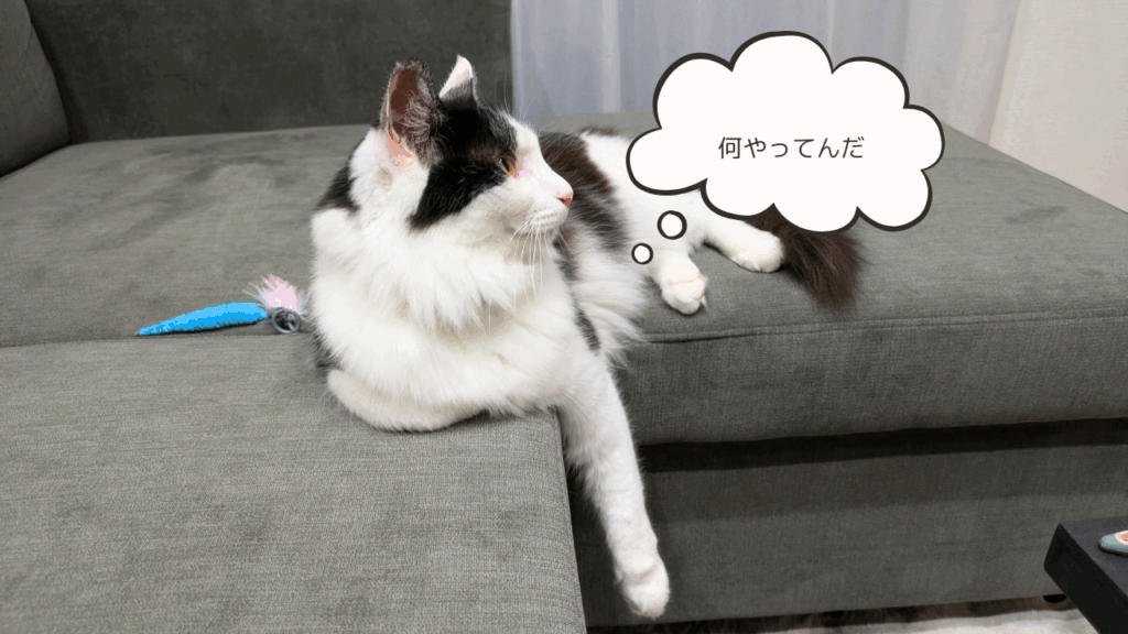 画面の中の猫に興味津々。ゲーム実況も好き。