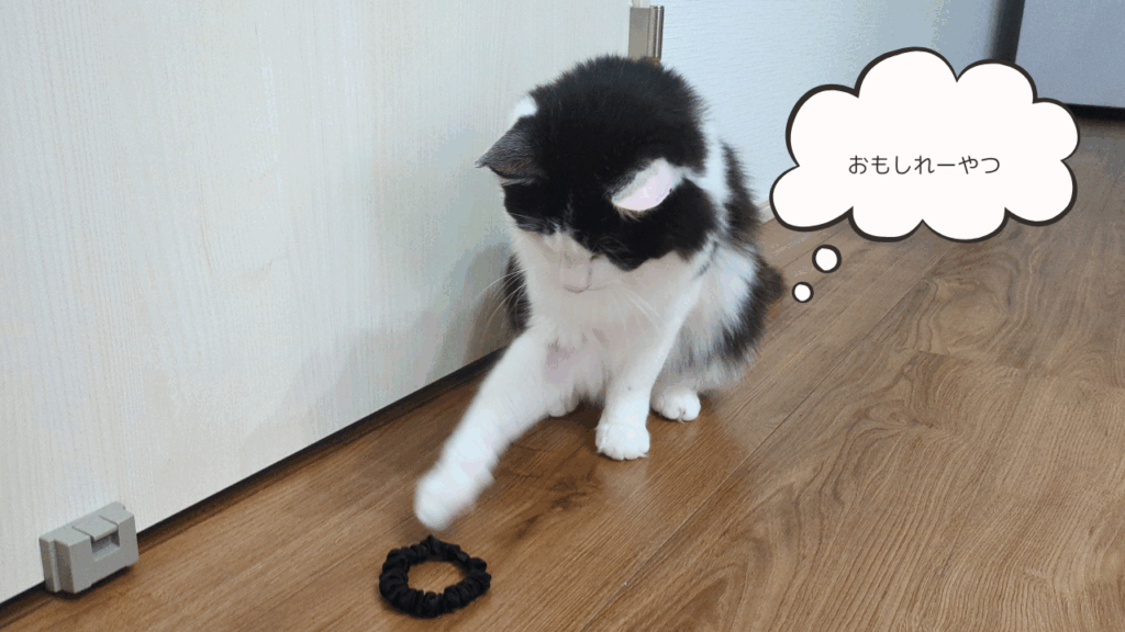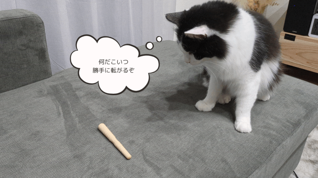 足つぼ棒も猫のおもちゃに。動くものが大好き。