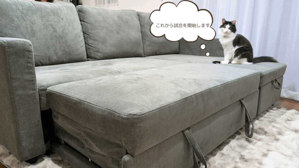 夜はソファを広げて遊ぶのが恒例。のびのび遊んでます。