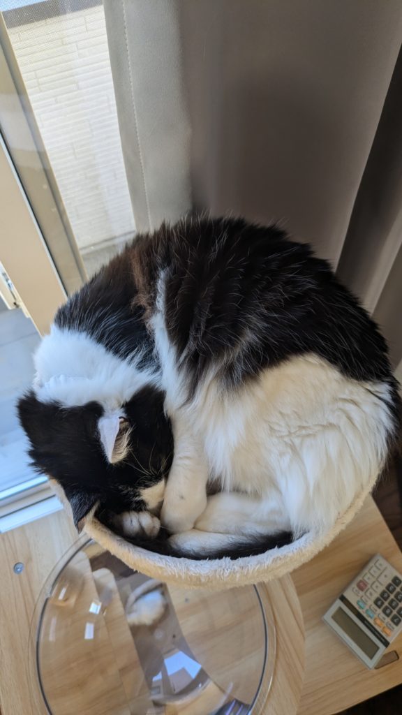 - 丸くなって寝ているかと思いきや、目が開いていてびっくり
